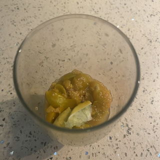 Take a serving glass, add 1.5 tbsp mashed gooseberry.