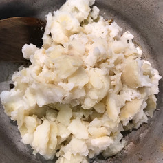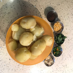 Lower the flame, add mashed potatoes and all the spices. Switch off the gas and mix well.