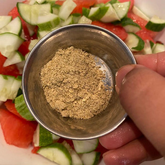 Add watermelon, cucumber, chaat masala and lemon juice.